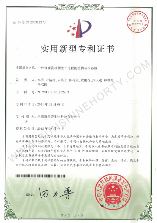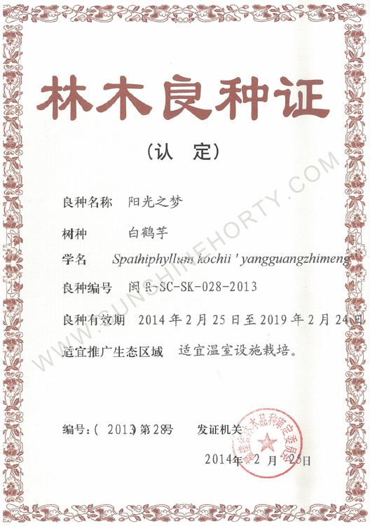 公司先后申报了20多项专利,获准专利15个,通过新品种省级认定4个。自主选育的新品种“新星”红掌、“红心”红掌获农业部新品种权保护;“阳光之梦”,“阳光之恋”,“阳光之星”系列白掌新品种获产品商标保护。公司对自主知识产权进行了有效保护。