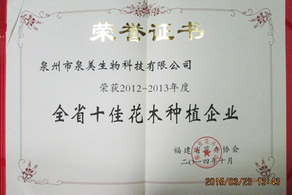 全省十佳花卉种植企业
