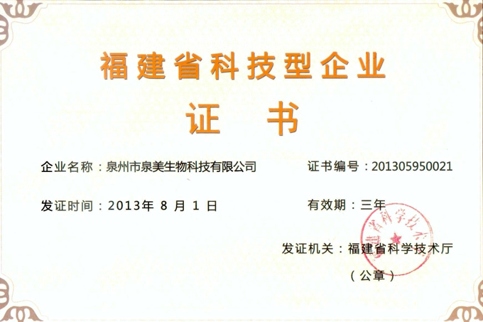 福建省科技型企业证书